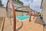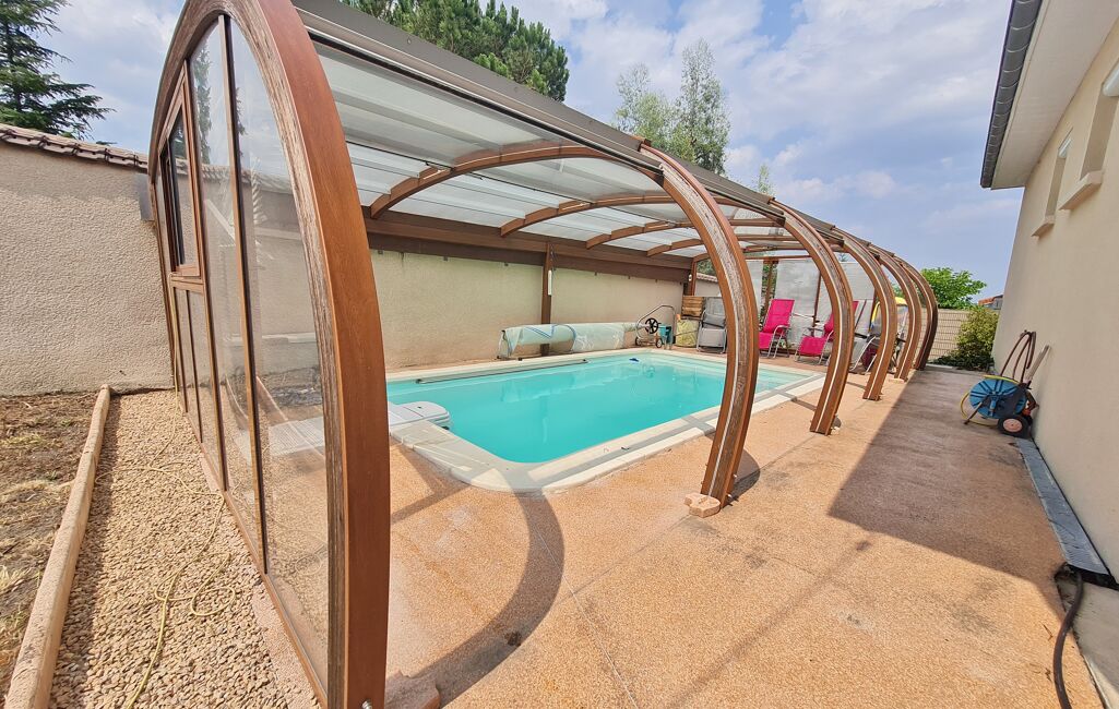 Le terrain de 865m2 est totalement clos et arboré. Pour vos belles journées d’été vous apprécierez sa piscine avec dôme ainsi qu’une terrasse exposée Sud-ouest dans un jardin propice à la détente.