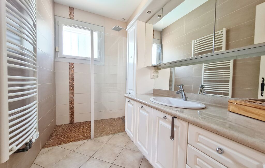 Elle se compose d’une pièce de vie spacieuse et lumineuse de 35m², un espace cuisine, 3 chambres avec dressing, une salle de bain avec douche à l’italienne, un cellier/buanderie et un WC.