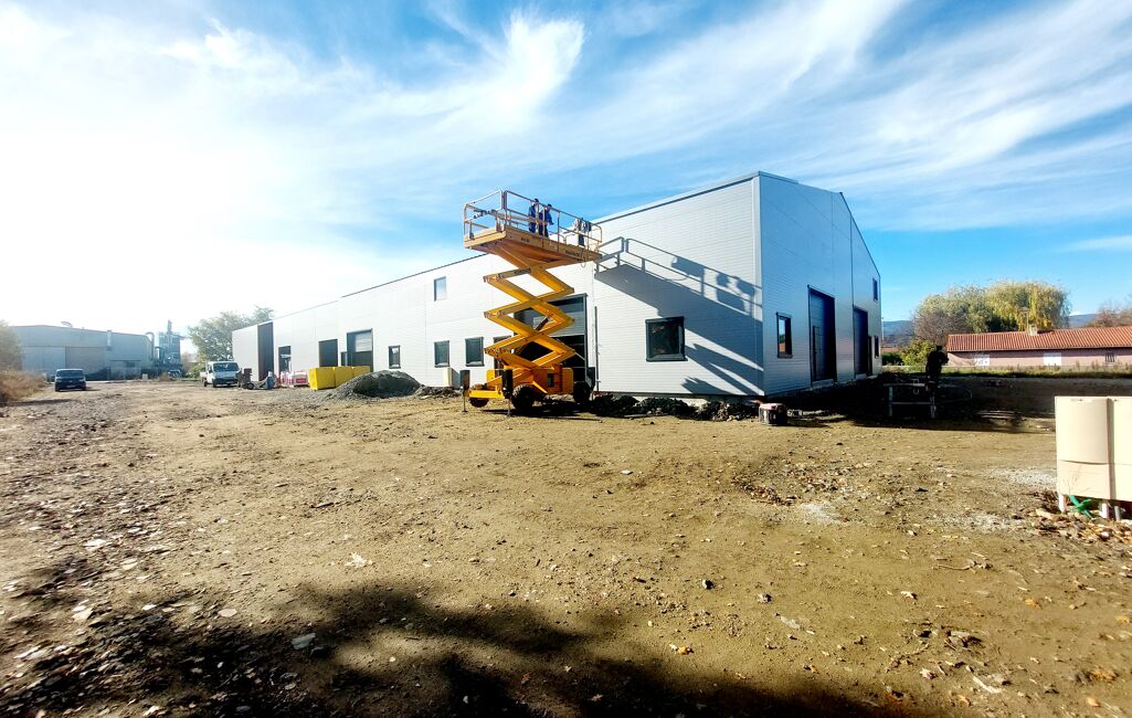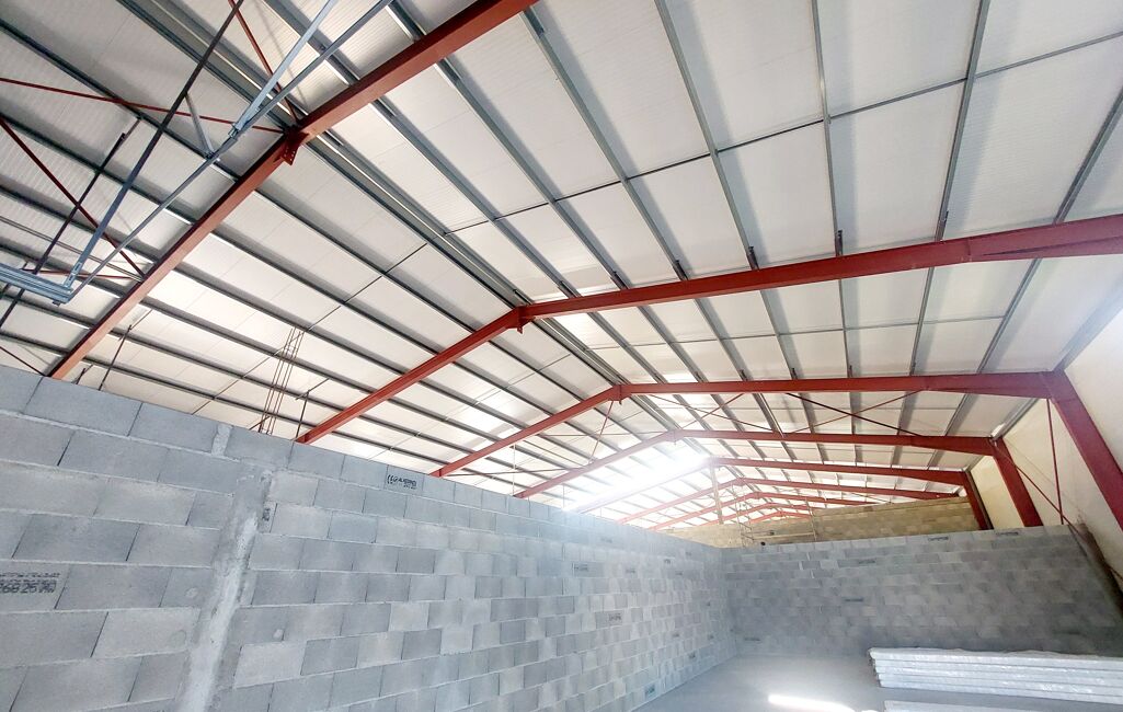 Les plus de la construction : ossature métallique, couverture en bac acier isolé,....