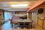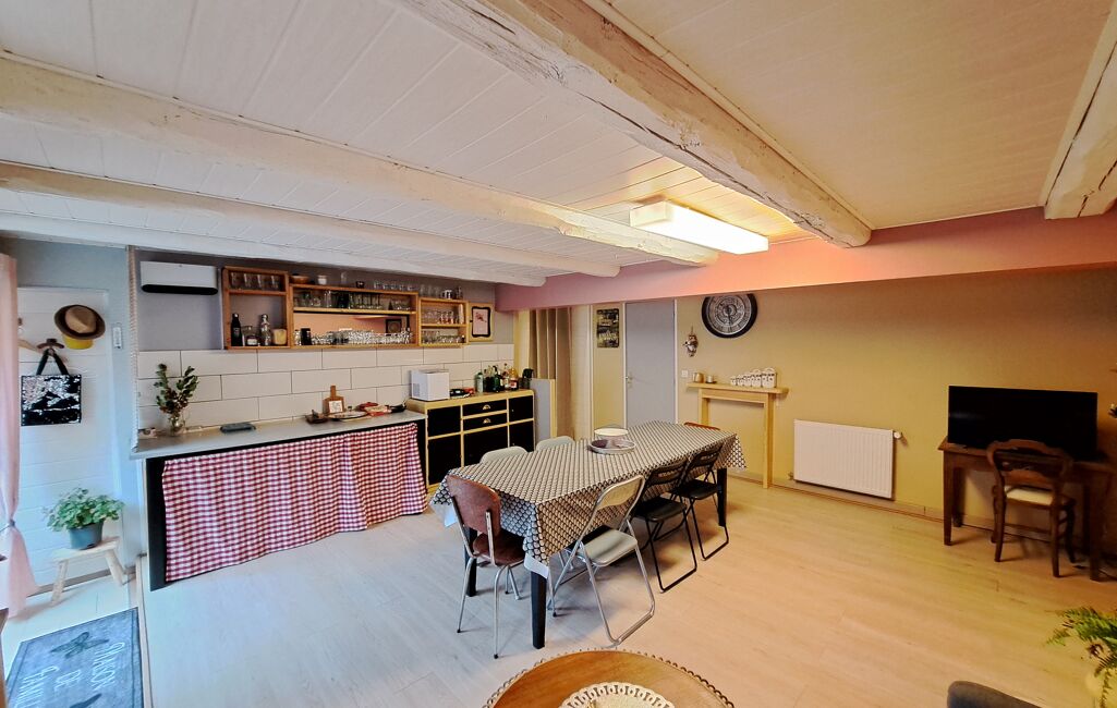 Au rez-de-chaussée, une première pièce de vie cuisine/salon d’environ 28 m², une buanderie de 11 m², un WC indépendant, une seconde pièce à vivre salon/salle à manger de 28 m² et une chaufferie.