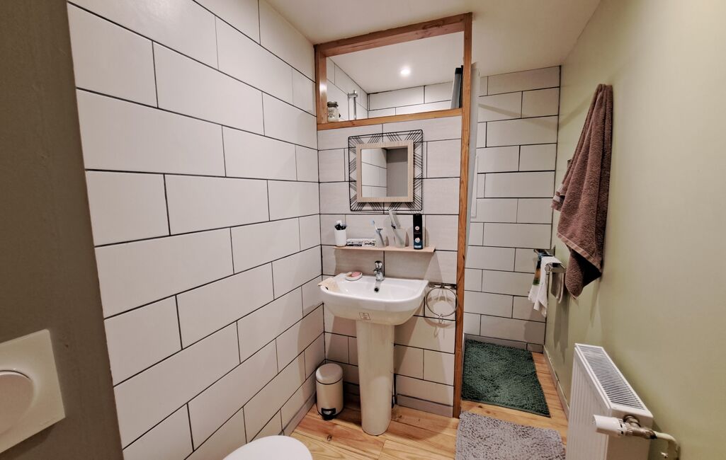 Côté dépendance, cette grange attenante d’une surface intérieure de 60 m² avec accès sur environ 40 m² de comble (aménageable) utile pour du stockage complémentaire et avec un appentis extérieur d’environ 35 m². Un garage double de 33 m² au sol à une quinzaine de mètres de l’habitation.