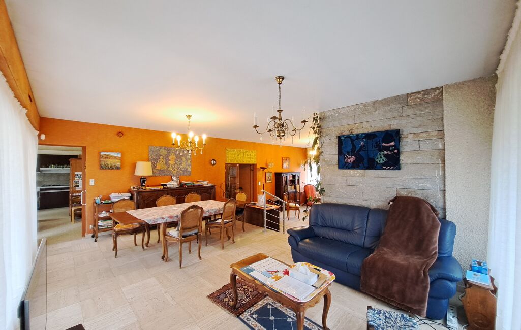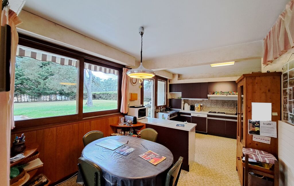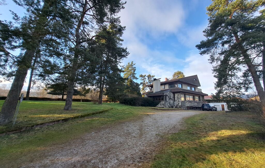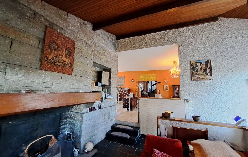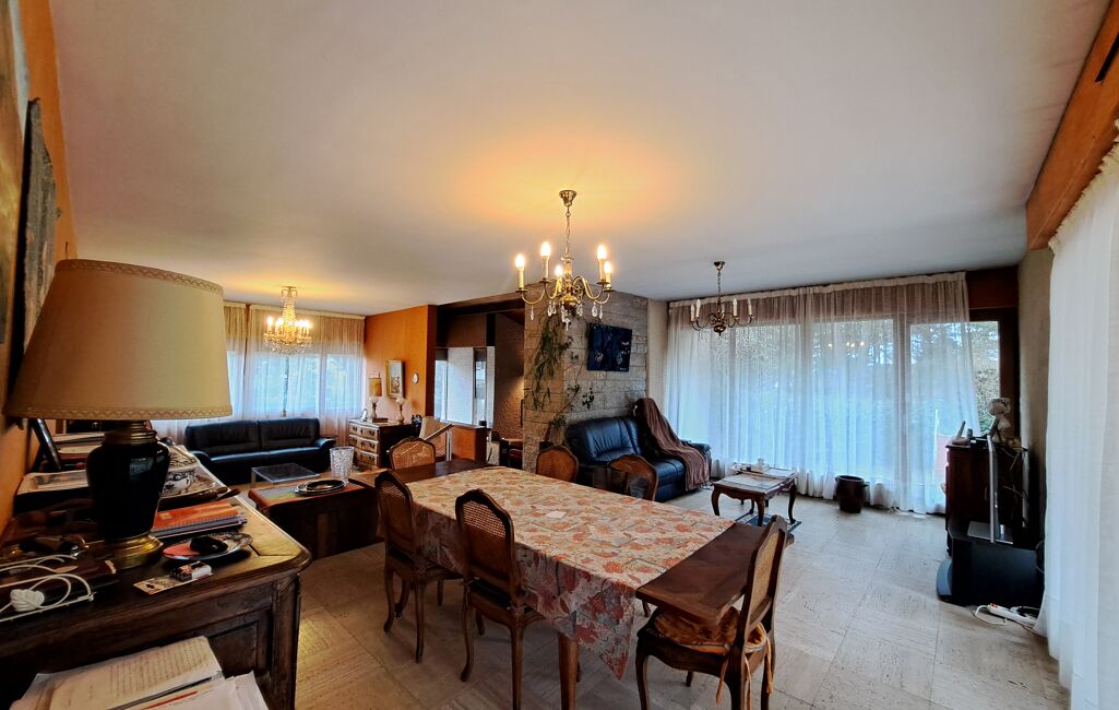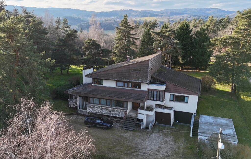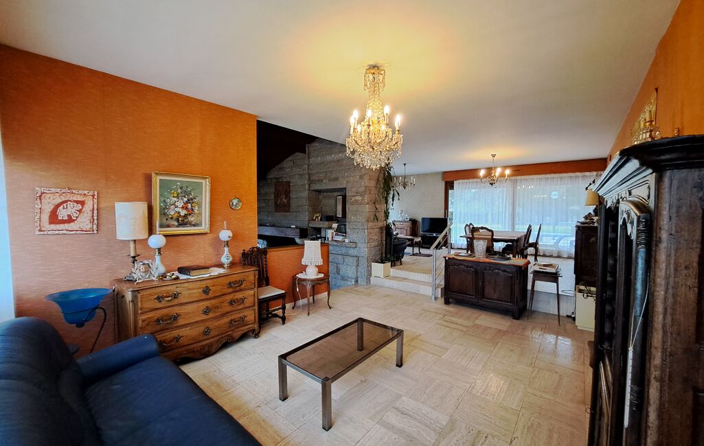 Spacieuse maison d’architecte de 1974 proposant pas moins de 248 m² habitables avec grand sous-sol aménagé et trois garages permettant le stationnement de cinq véhicules, le tout sur charmant terrain plat en cadre bucolique d’une surface de 4520 m².