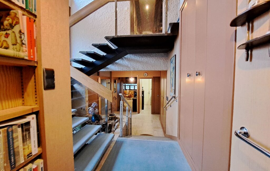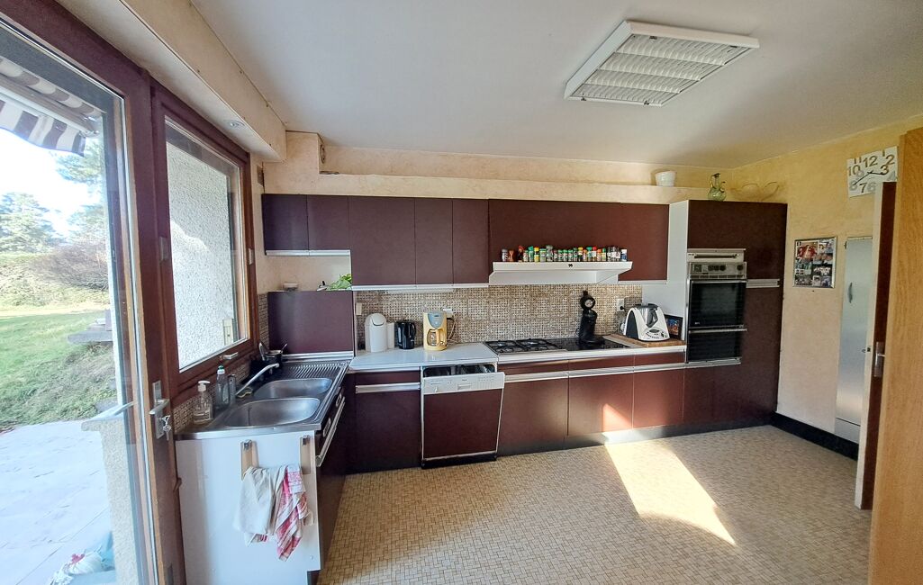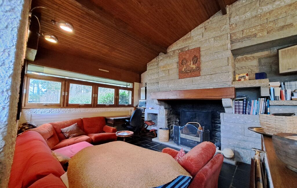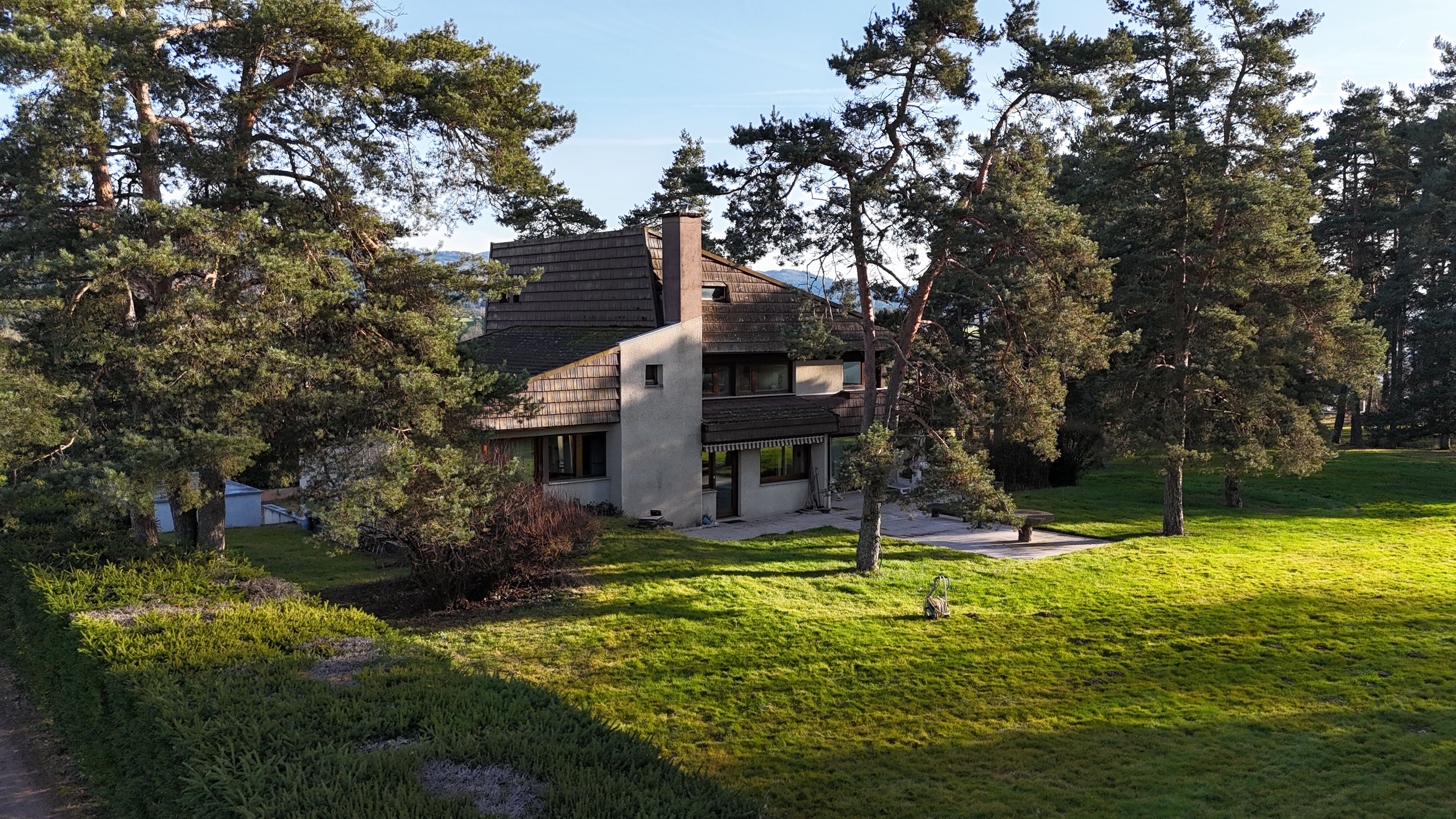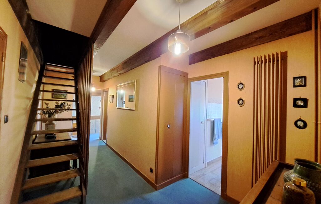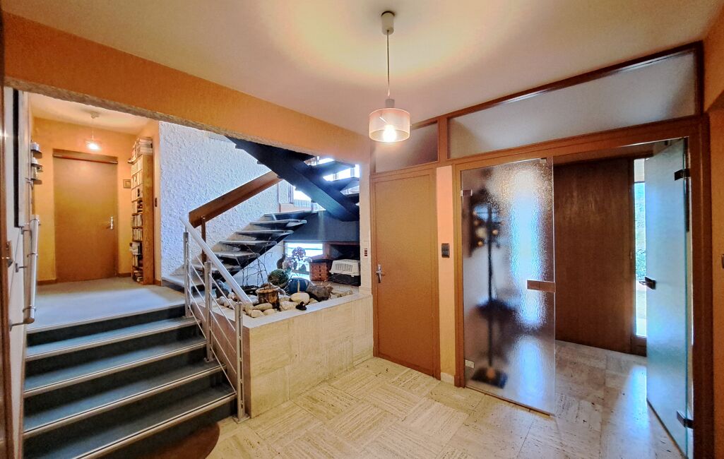 Spacieuse maison d’architecte de 1974 proposant pas moins de 248 m² habitables avec grand sous-sol aménagé et trois garages permettant le stationnement de cinq véhicules, le tout sur charmant terrain plat en cadre bucolique d’une surface de 4520 m².