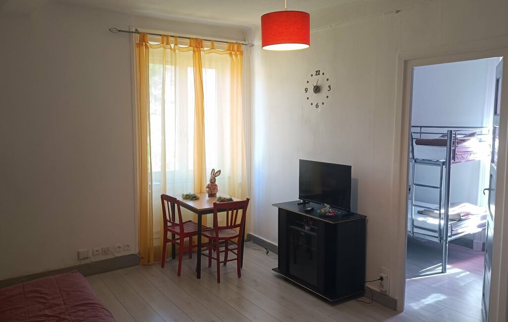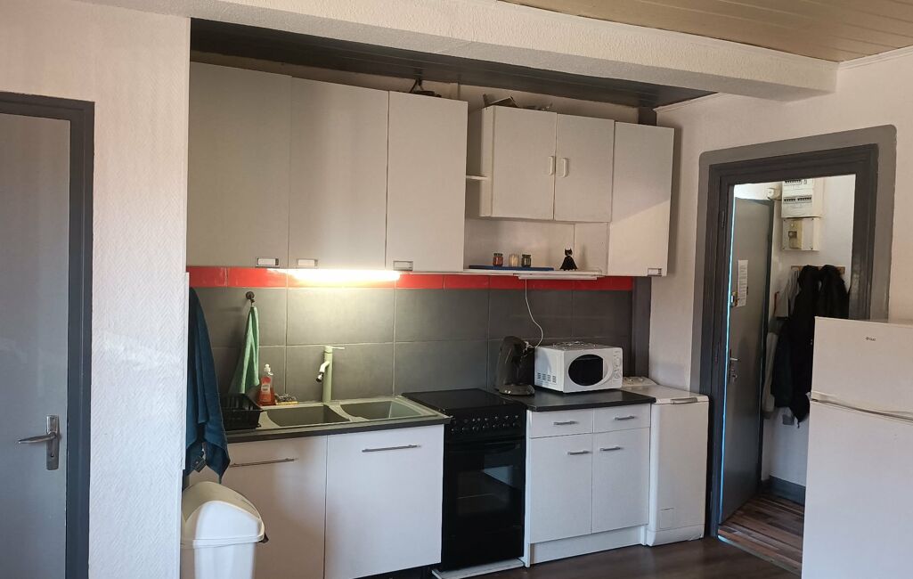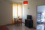 L'appartement se compose d'une cuisine avec plaque, four et divers rangement, salon / sale à manger.