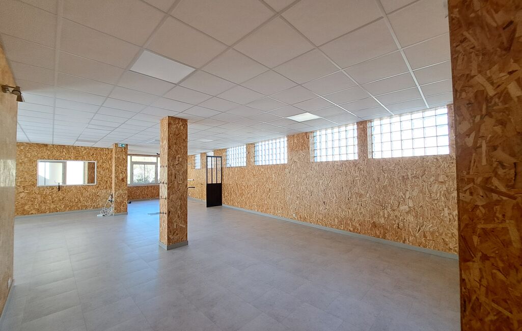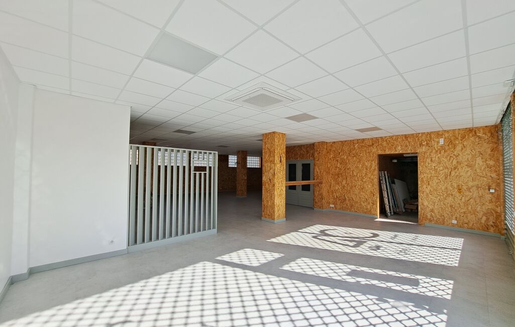 Au rez-de-chaussée, un spacieux local commercial/magasin d’environ 185 m² entièrement rénové en 2021 et équipé de deux plafonniers aérotherme récent. Ce local se compose d’une grande pièce principale, d’un bureau, d’une pièce de stockage et d’un petit garage pour véhicule 2 roues.