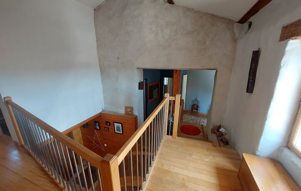 - au demi niveau au dessus : 3 chambres, une salle d'eau ainsi qu'une vaste mezzanine.