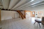Au rez-de-chaussée, une spacieuse pièce de vie salon/salle à manger/cuisine d’environ 50 m² avec son fourneau bois et une jolie cave voutée de 8 m²
