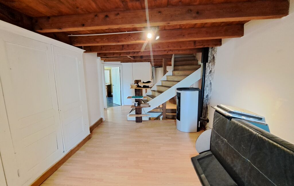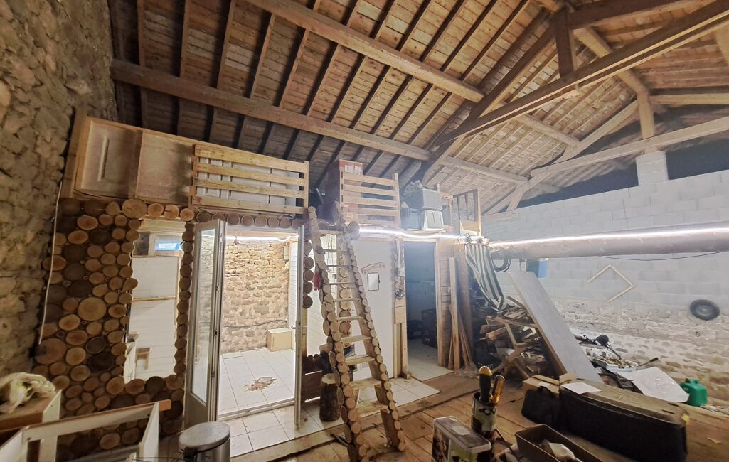 Au 1er étage, un dégagement donnant sur une chambre, une salle d’eau, un petit salon avec poêle à granule et une remise avec accès sur le terrain.