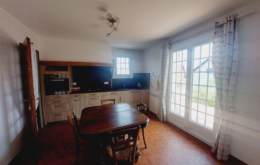 - d'un rdc avec un hall d'entrée donnant sur cuisine équipée ainsi que sur séjour salle à manger, un wc, une salle de bains et 3 chambres.