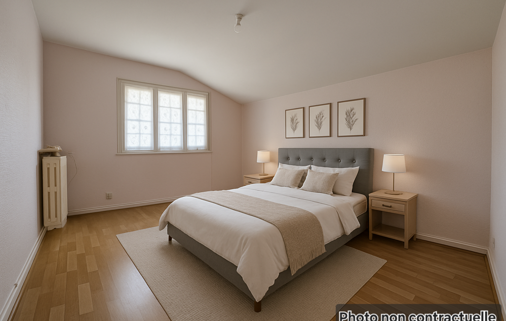 - A l’étage un appartement Type F2 d’une surface de 58m², actuellement libre de toute occupation.