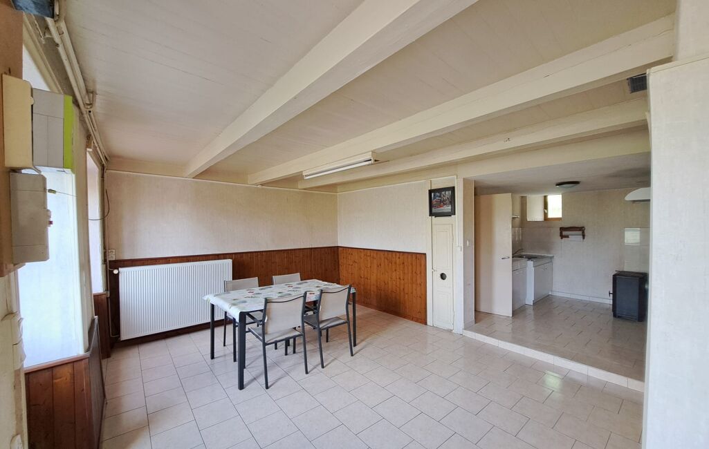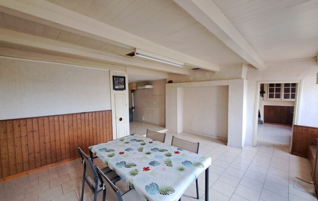 - Au RDC, Une pièce salle à manger/cuisine d’environ 27 m², un salon de 19 m², une buanderie et un WC indépendant.